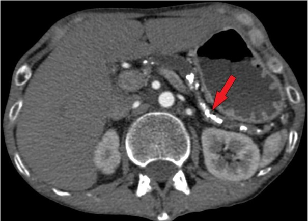 Pancreatic imaging typically reveals generalized or segmental pancreatic enlargement, coupled with the loss of normal lobularity and diffuse stenosis of the pancreatic duct [1]. Our patient’s abdominal US and CT revealed dilation of the pancreatic duct due to intraductal concrements.