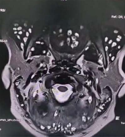 Neurocysticercosis as a common cause of seizures – in endemic regions, NCC should be suspected in patients presenting with new-onset seizures and chronic headache. Recognition of the scolex within cystic lesions on MRI is pathognomonic and crucial for diagnosis. Muscular cysticercosis, though uncommon, may present in extraocular, facial, and tongue muscles. Identifying the scolex differentiates it from abscesses or neoplastic lesions, preventing unnecessary invasive procedures. MRI remains the gold standard for detecting CNS and muscular involvement, delineating active disease, and excluding differential diagnoses such as tuberculomas or metastases [8]. Degenerative disc bulges, though incidental, may contribute to chronic pain or radiculopathy. Their recognition prevents misattribution of neurological symptoms solely to NCC. Optimal care requires antiparasitic therapy, seizure control, corticosteroids, and orthopedic/rehabilitative support for spinal degeneration.