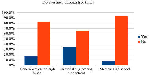 The subjective feeling of high school students (regardless of the school) is that they do not have enough leisure time (see Figure 1).