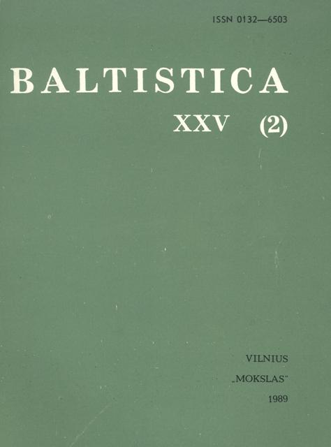 Vol. 25 No. 2 (1989): Baltistica