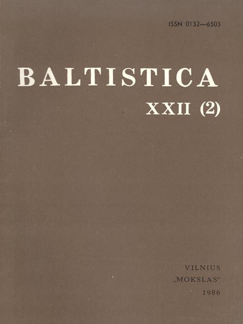 Vol. 22 No. 2 (1986): Baltistica