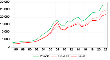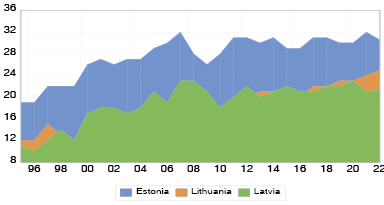 The Baltic region stands as a dynamic economic entity marked by a robust interplay between FDI, gross fixed capital formation, and international trade. FDI inflows into the Baltic states have been instrumental in driving economic growth and integration with the global market. FDI has emerged as a crucial source of external financing for these countries, facilitating technological transfers, job creation, and export expansion (Barkauskaite and Naraskeviciute, 2016; UNCTAD, 2020). Since gaining independence in the early 1990s, these countries have actively pursued policies aimed at attracting foreign investors, leveraging their strategic locations, skilled workforces, and business-friendly environments (World Bank, 2019). The World Investment Report indicates a steady increase in FDI inflows to the Baltic region in recent years, with sectors such as manufacturing, services, and information technology being the primary beneficiaries (UNCTAD, 2021). In the Baltic countries, domestic investment is influenced by various factors, including national policies, the availability of financing, and external economic conditions (Eurostat, 2024).