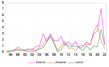Sineviciene, L., & Krusinskas, R. (2018). How Dependent Are the Baltic States on Russia? Europe-Asia Studies, 70(8), 1264-1280, DOI: 10.1080/09668136.2018.1508643.