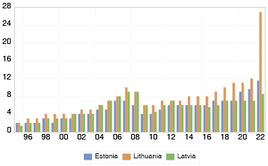 Claus-Friedrich, L., & Klaus, S. (2005). Baltic Trade with Europe: Back to the Roots? Baltic Journal of Economics, 5(2), 15-37, DOI: 10.1080/1406099X.2005.10840421.