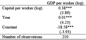 In the second step, we formulate the model for the explanation of the changes in the labor productivity (in t=2020, 2021, in country i) by using the following formula: