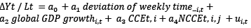 where i (j = 0, 1, 2, 3) are the parameters of the equation, and ui,t is the random error.
