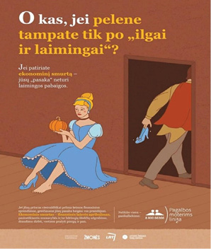 Emocinės paramos tarnybos „Pagalbos moterims linija“ reklaminės kampanijos tikslas – ne tik skatinti kalbėti ir pabrėžti tokio beprecedenčio reiškinio kaip smurtas žiaurumą, bet ir ugdyti didesnį savo sąmoningumą, lyčių lygybės supratimą, nes lyčių nelygybė – viena esminių smurto prieš moteris priežasčių. Tam pasitelkiama originali pasakų („Miegančioji gražuolė“, „Pelenė“ ir kt.) interpretacija, aktualizuojanti smurto prieš moteris sritis, mastą ir žalą. Kiekvienos reklamos leitmotyvas – nesunkiai atpažįstamo posakio (plg.