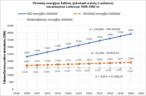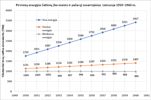 59 Taip pat ir vėlesniais metais „pačių gyventojų pasiruošto kuro“ apimtys liko didelės: 1965 m. – 1 100 000 TCE (770 000 TNE), 1970 m. – 700 000 TCE (490 000 TNE), 1975 m. – 250 000 TCE (175 000 TNE). Žr. Энергетика Литовской ССР (1970–1975), 1977; Энергетика Литовской ССР (1975–1980), 1983.