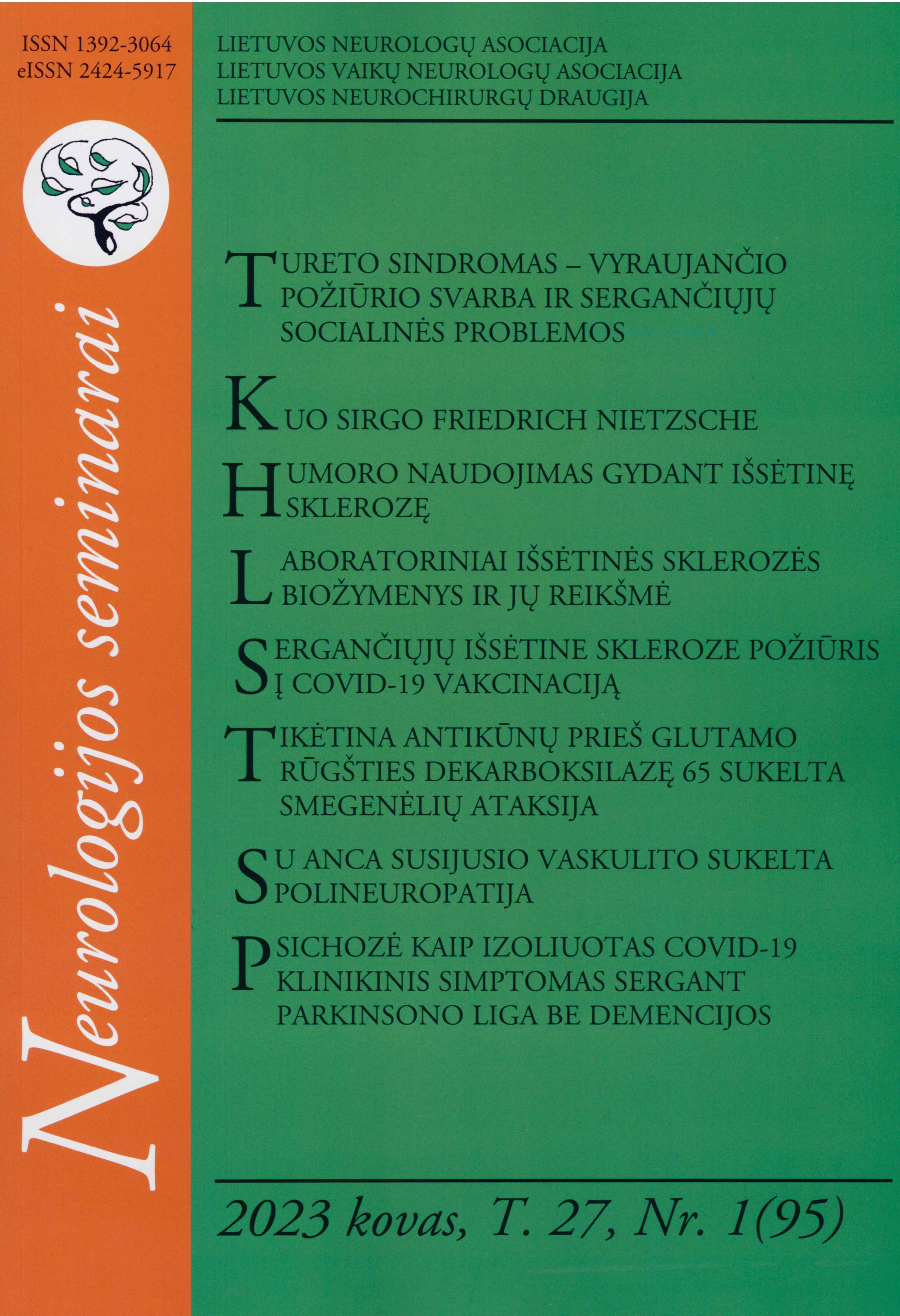 Įvadas. Pandemijos metu vakcinacija nuo COVID-19 tapo vienu svarbiausių būdų užkirsti kelią sunkesnei infekcijos eigai. Kita vertus, koronaviruso pandemijos metu atsiskleidė ir didelis visuomenės, užkirsti kelią sunkesnei infekcijos eigai. Kita vertus, koronaviruso pandemijos metu atsiskleidė ir didelis visuomenės, įskaitant ir sergančiuosius išsėtine skleroze (IS), nepasitikėjimas vakcinomis. Lietuvoje pacientų, sergančių IS, požiūris į vakcinaciją nuo COVID-19 dar nebuvo vertintas. Atlikome tyrimą, kuriuo siekėme įvertinti sergančiųjų IS nuomonę apie vakcinaciją nuo koronaviruso infekcijos.
