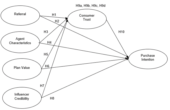 Keywords: referral, agent characteristics, influencer credibility, plan value, consumer trust, insurance purchase intention