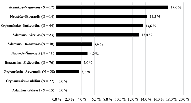 Žinoma, sėkmė nėra garantuota – ir ne vien tuo požiūriu, kad ne visi aukšto lygmens paskyrimai vėliau pasiteisina (pavyzdžiui, įtarimai korupcija buvo pareikšti keliems Apeliacinio teismo ir Aukščiausiojo Teismo teisėjams)3. Pasitaiko atvejų, kai dėl paskyrimų valdžios grandys nesusitaria. Žiniasklaidoje pastaruoju metu daug dėmesio skirta G. Nausėdos ir Užsienio reikalų ministerijos nesutarimams dėl ambasadoriaus Lenkijoje skyrimo4, anksčiau tarp valdančiųjų ir prezidento ilgai derinta Lietuvos atstovo ES pareigybė. Čia reikėtų pažymėti – tai bus svarbu straipsnyje pateikiamam tyrimui ir jo duomenims – kad diplomatinių Lietuvos atstovų paskyrimo procedūra skiriasi nuo kitų aukštų valstybės vidaus pareigūnų paskyrimo procedūros. Diplomatus skiria prezidentas vyriausybės teikimu – taigi čia nėra oficialios balsavimo Seime fazės, todėl keblu aiškiai užfiksuoti prezidento dekreto sėkmės ar nesėkmės momentą. Kitų aukštų pareigūnų paskyrimas įtraukia balsavimą Seime: kai parlamentas arba (ne)pritaria prezidento skiriamam pareigūnui, arba teisiškai (ne)skiria jį pats, balsuodamas dėl prezidento teikimo. Nepaisant didelio tokių dekretų sėkmės procento, čia irgi pasitaiko svarbių išimčių, kai skyrimas nepavyksta. Tai nutinka ir populiariems prezidentams, turintiems didelę politinę patirtį. Pavyzdžiui, Daliai Grybauskaitei 2015 m. tik iš trečio karto pavyko paskirti generalinį prokurorą: pirmosios dvi kandidatūros Seime buvo atmestos5. Tai, atrodo, gali paaiškinti ir sugyventinio režimas – po 2012 m. rinkimų su kairiąja dauguma santykiai buvo įtempti.