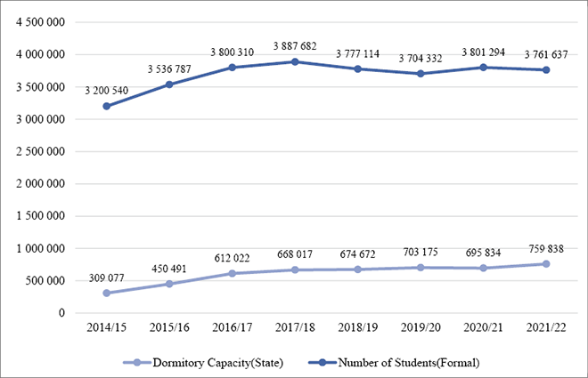 Number of students enrolled in higher education and state dormitory capacities 2021/2022