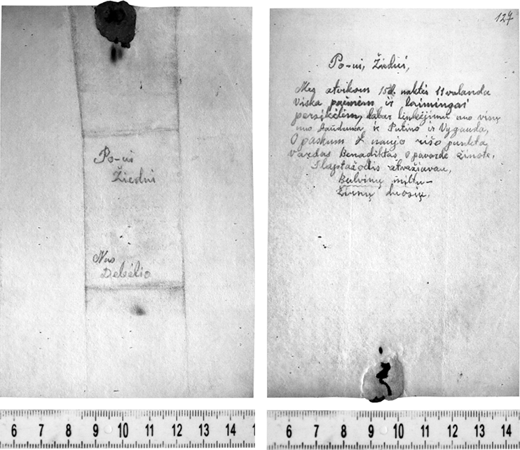 12 Deja, žinomas tik saugumiečių parengtas laiško vertimas į rusų kalbą.