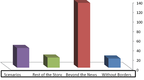 It also appears that most of the dialogues that took place took the form of via-satellite multi-guest dialogues. The most prominent job title of the guests hosted in these shows was university professor, followed by political analyst, then scholar, and finally, political consultant.
